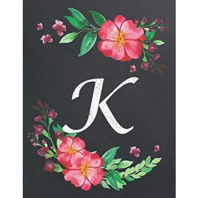 K: Monogram Initial K Notebook for Women and Girls, Floral Design, Lined Pages (Composition Book, Personalized Journal) (8.5 x 11 Large) (Floral Notebook)