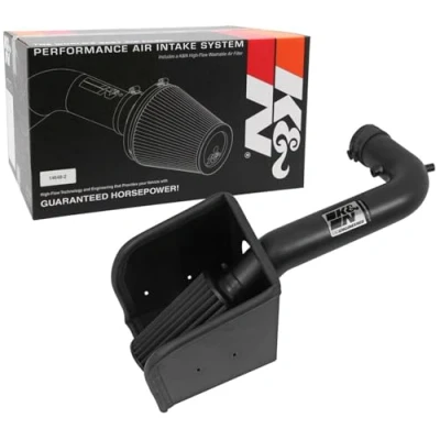 Guaranteed to increase horsepower Designed to improve throttle response and engine sound Washable and reusable air filter Made from all black components Lasts up to 100,000 miles before service is required (depending on driving conditions) ULTIMATE LONGEVITY: 10-Year/Million Mile Limited Warranty protects for the life of your vehicle GUARANTEED INCREASE IN HORSEPOWER: Dyno-tested with up to 50% more airflow than restrictive factory box air filter and intake tube BETTER TOWING: Improves acceleration and uphill performance when towing by improving throttle response IMPROVED ENGINE SOUND: Hear the power under the hood WORLD CLASS PROTECTION: Pushing the limits of engine protection by protecting your engine from harmful contaminants EASY MAINTENANCE: No filter cleaning required for up to 100,000 miles EASY TO INSTALL: Bolt-on power in less than an hour with basic hand tools; K&N air intake systems are one of the easiest ways to guarantee an increase in horsepower DYNO TESTED: Dyno-tested for a guaranteed increase in horsepower and acceleration with no ECU tune required HIGH QUALITY: Made in America