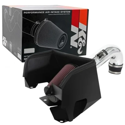 GUARANTEED INCREASE IN HORSEPOWER & TORQUE: K&N cold air intake systems provide a less restrictive path for airflow, increasing the volume of cool, oxygen-rich air into your engine. DYNO TESTING YOU CAN TRUST: K&N air intake horsepower/torque testing is performed on wheel-based dynamometers and the reports are included with each intake system. IMPROVED ENGINE SOUND - HEAR THE GROWL: K&N’s intake systems allow your engine to breathe and sound as it should- your engine will growl on acceleration and return to quiet once at speed. BETTER TOWING: K&N Air intake kit improves acceleration and uphill performance when towing by improving throttle response, overall horsepower and torque. Excellent for daily and highway driving. PREMIUM ENGINE PROTECTION FROM A TRUSTED BRAND: K&N air intake will not void manufacturer vehicle warranty & No-Hassle Lifetime Limited Warranty protects for the life of your vehicle. HIGH-FLOW REUSABLE AIR FILTER: 4 layers of pleated, breathable cotton with K&N’s red filter oil to absorb dirt & dust particles, allowing clean air to continue flowing into your engine, only needs cleaning every 100k miles under normal highway conditions. EASY TO INSTALL: Includes detailed, step-by-step instructions & all necessary parts- the entire air intake system can typically be installed in less than 60 minutes with basic hand tools. MADE IN THE USA: Proudly made in the USA for trusted quality & reliability and backed by US based customer support.