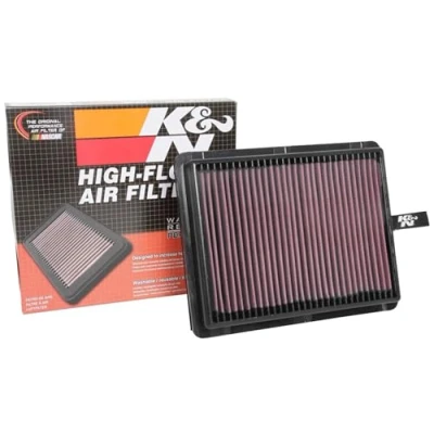 ULTIMATE LONGEVITY: 10-Year/Million Mile Limited Warranty protects for the life of your vehicle. ENGINEERED POWER: State-of-the-art filtration media provides up to 50% more airflow than disposable paper filters to increase power and acceleration; Clogged or dirty air filters can reduce your vehicle’s acceleration by up to 10%. EASY INSTALLATION: Pre-oiled and ready to drop into your factory air box; One of the easiest and most cost-effective upgrades for your vehicle for quick performance gains. SAVES MONEY: K&N high-flow replacement air filters will save you $250 over 10 years by avoiding disposable filters. ECO-FRIENDLY: Using a washable, reusable product helps reduce replacement waste; A K&N filter will last longer than 10 disposable filters.