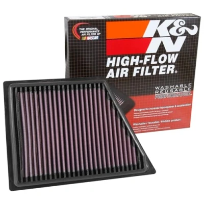 ULTIMATE LONGEVITY: 10-Year/Million Mile Limited Warranty protects for the life of your vehicle. ENGINEERED POWER: State-of-the-art filtration media provides up to 50% more airflow than disposable paper filters to increase power and acceleration; Clogged or dirty air filters can reduce your vehicle’s acceleration by up to 10%. EASY INSTALLATION: Pre-oiled and ready to drop into your factory air box; One of the easiest and most cost-effective upgrades for your vehicle for quick performance gains. SAVES MONEY: K&N high-flow replacement air filters will save you $250 over 10 years by avoiding disposable filters. ECO-FRIENDLY: Using a washable, reusable product helps reduce replacement waste; A K&N filter will last longer than 10 disposable filters.