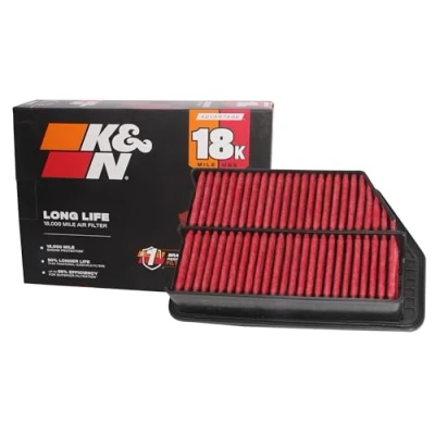 RUGGED CONSTRUCTION: K&N Advantage Plus Air Filters are manufactured with durable, premium materials to last for up to 18,000 miles of use. EXTENDED LIFE 18K: K&N Advantage Plus Air Filter provides 50% longer life compared to standard 12,000-mile filters. SUPERIOR FILTRATION & PROTECTION: K&N uses a premium filter media that provides up to 99% efficiency to protect your engine. REPLACE EVERY 18K Miles: Engine air filter only needs to be replaced every 18,000 Miles under normal highway driving conditions (1.5 years based on the average miles driven per year of 12,000 miles) NO-HASSLE WARRANTY: 1-Year Limited Warranty.