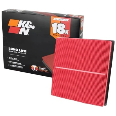 RUGGED CONSTRUCTION: K&N Advantage Plus Air Filters are manufactured with durable, premium materials to last for up to 18,000 miles of use. EXTENDED LIFE 18K: K&N Advantage Plus Air Filter provides 50% longer life compared to standard 12,000-mile filters. SUPERIOR FILTRATION & PROTECTION: K&N uses a premium filter media that provides up to 99% efficiency to protect your engine. REPLACE EVERY 18K Miles: Engine air filter only needs to be replaced every 18,000 Miles under normal highway driving conditions (1.5 years based on the average miles driven per year of 12,000 miles) NO-HASSLE WARRANTY: 1-Year Limited Warranty.