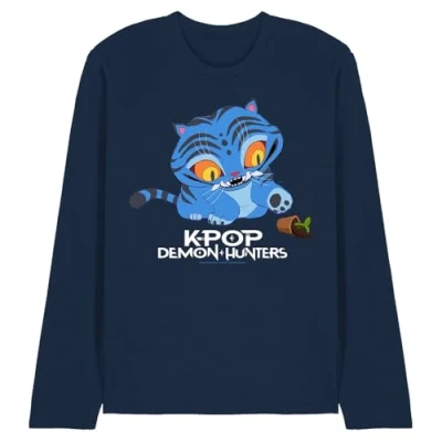 K Pop Demon Hunters Cute Derpy Tiger Cartoon Unisex Long Sleeve T Shirt, Navy, Medium