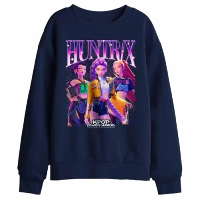 K Pop Demon Hunters Huntrix Bootleg Kids Sweatshirt, Navy, 7 8
