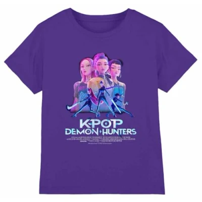 K Pop Demon Hunters Huntrix Huntr/X Billboard Poster Kids T Shirt, Purple, 5 6
