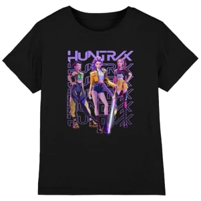 K Pop Demon Hunters Huntrix Huntr/X Golden Trio Pose Kids T Shirt, Black, 5 6