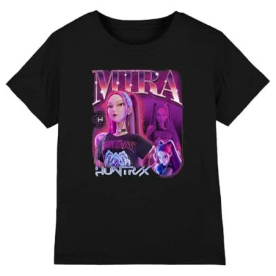 K Pop Demon Hunters Huntrix Huntr/X Mira Bootleg Kids T Shirt, Black, 9 11
