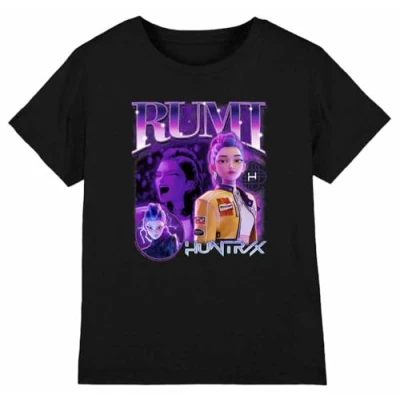 K Pop Demon Hunters Huntrix Huntr/X Rumi Bootleg Kids T Shirt, Black, 9 11