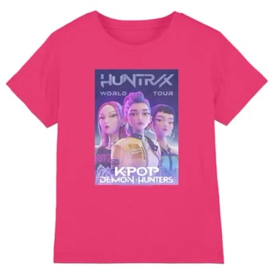 K Pop Demon Hunters Huntrix Huntr/X World Tour Billboard Kids T Shirt, Fuchsia, 7 8