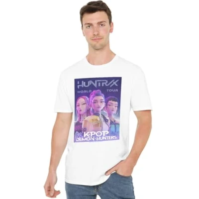 K-POP DEMON HUNTERS UNISEX T-SHIRT FOR MEN & WOMEN: Crafted from premium ringspun cotton, our T-shirts are the epitome of timeless style. Embrace your individuality with a look as distinct as you are. Created for everyday wear, our tees feature a breathable all-season mid-weight weave, ensuring comfort in a versatile tagless design. Beyond ordinary, our short-sleeve tee is built to last. VERSATILE FIT: Whether you're an icon, influencer, or a myth in the making, discover a facet for every version of yourself. Pre-shrunk for the perfect fit, our tees are meant to be worn daily. With a crew neckline, short sleeves, regular silhouette, and straight hemline, this top is designed for comfort. Casual and classic, it's the ideal choice for any occasion. Only good vibes here. OFFICIALLY LICENSED - Discover exeptional style with our officially licensed pop culture designs! Created by our in-house graphic art team, each piece is a proud representation of craftsmanship, meticulously designed and printed in the UK. Showcase your favorite characters and themes, making every wear a statement of your unique style! EFFORTLESS CARE: From school and work to hanging out with mates, our classic tee is tailored for the real world. No complicated care instructions – simply wear, wash, repeat. Launder cold and tumble or hang dry to maintain the longevity of your new favourite shirt. PERFECT GIFTING OPTION: Ideal for sharing the love, our thoughtfully crafted and vividly rendered T-shirts are perfect for any superfan. Kit your loved ones out for their next birthday, holiday, themed event, Christmas or special occasion.