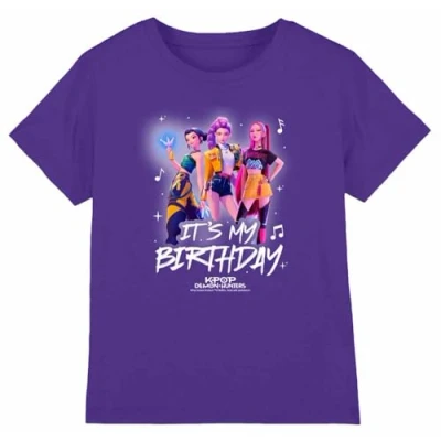 K Pop Demon Hunters Huntrix It's My Birthday Group Kids T Shirt, Purple, 9 11
