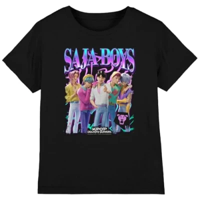 K Pop Demon Hunters Saja Boys Bootleg Kids T Shirt, Black, 5 6