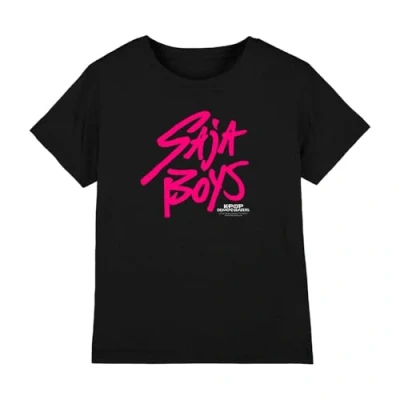 K Pop Demon Hunters Saja Boys Pink Logo Kids T Shirt, Black, 9 11 Years