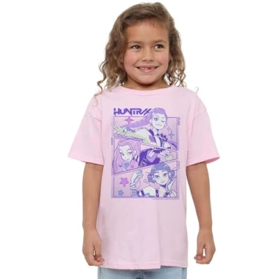 K Pop Demon Hunters Unisex Kid's Anime Huntrix Huntr/X T Shirt, Black, Light Pink, 12 13 Jahre