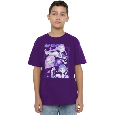 K Pop Demon Hunters Unisex Kid's Anime Huntrix Huntr/X T Shirt, Black, Purple, 3 4 Jahre