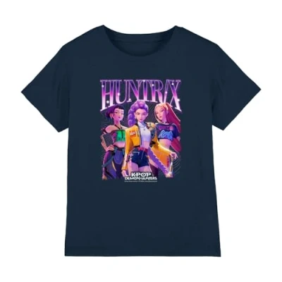 K Pop Demon Hunters Unisex Kid's Huntrix Bootleg T Shirt, Navy, 7 8 anni