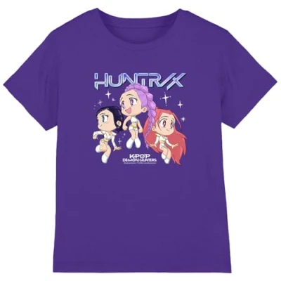 K Pop Demon Hunters Unisex Kid's Kpop Huntrix Chibi Group T Shirt, Purple, 7 8 Jahre