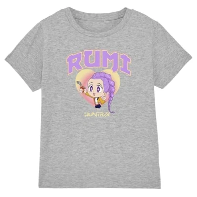 K Pop Demon Hunters Unisex Kid's Kpop Huntrix Rumi Collegic T Shirt, Heather Grey, 7 8 Jahre
