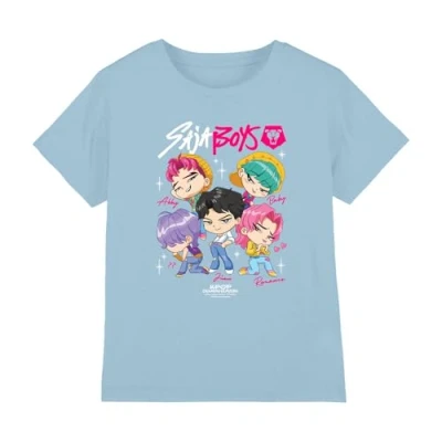 K Pop Demon Hunters Unisex Kid's Kpop Saja Boys Chibi Poster T Shirt, Light Blue, 3 4 Jahre