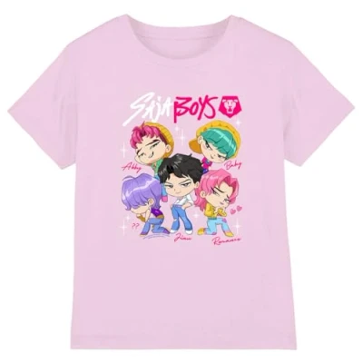 K Pop Demon Hunters Unisex Kid's Kpop Saja Boys Chibi Poster T Shirt, Light Pink, 3 4 Jahre