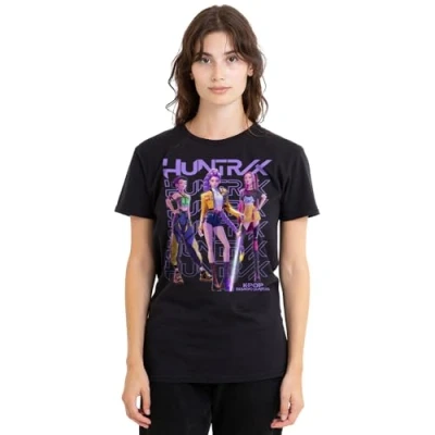 K-POP DEMON HUNTERS LADIES T-SHIRT FOR WOMEN: Crafted from premium ringspun cotton, our T-shirts are the epitome of timeless style. Embrace your individuality with a look as distinct as you are. Created for everyday wear, our tees feature a breathable all-season mid-weight weave, ensuring comfort in a versatile tagless design. Beyond ordinary, our short-sleeve tee is built to last. VERSATILE FIT: Whether you're an icon, influencer, or a myth in the making, discover a facet for every version of yourself. Pre-shrunk for the perfect fit, our tees are meant to be worn daily. With a crew neckline, short sleeves, regular silhouette, and straight hemline, this top is designed for comfort. Casual and classic, it's the ideal choice for any occasion. Only good vibes here. OFFICIALLY LICENSED - Discover exeptional style with our officially licensed pop culture designs! Created by our in-house graphic art team, each piece is a proud representation of craftsmanship, meticulously designed and printed in the UK. Showcase your favorite characters and themes, making every wear a statement of your unique style! EFFORTLESS CARE: From school and work to hanging out with mates, our classic women's tee is tailored for the real world. No complicated care instructions – simply wear, wash, repeat. Launder cold and tumble or hang dry to maintain the longevity of your new favourite shirt. PERFECT GIFTING OPTION: Ideal for sharing the love, our thoughtfully crafted and vividly rendered T-shirts are perfect for any superfan. Kit your loved ones out for their next birthday, holiday, themed event, Christmas or special occasion.