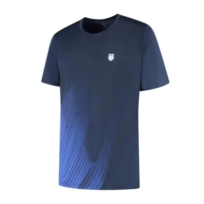 High-performance tennis crew designed for comfort and mobility Lightweight, breathable fabric keeps you cool during play Modern neckline for a clean, athletic fit Bold Navy and Dazzling Blue print for a dynamic, sporty look Smooth seams and K-Swiss logo detail ensure lasting comfort and style