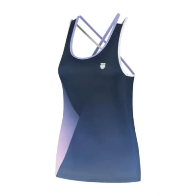 Lightweight singlet designed for breathability and comfort Gradient Navy/Infinity design for a dynamic, modern look Crossed back straps offer freedom of movement and support Moisture-wicking fabric keeps you cool and dry Soft stretch material with K-Swiss logo for premium tennis style