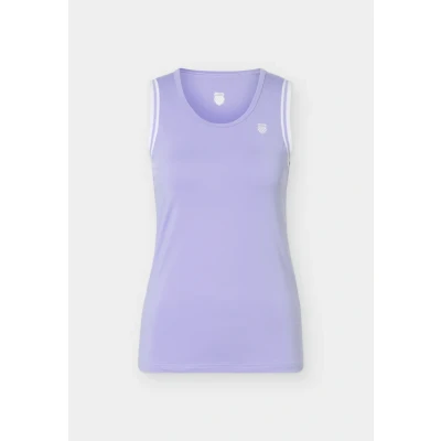 Lightweight singlet designed for performance and mobility Breathable, moisture-wicking fabric keeps you cool and comfortable Stretchable material ensures unrestricted movement Contrast trim enhances the sporty, feminine design Vibrant Neon Purple color with K-Swiss logo for a modern tennis look