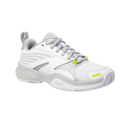 K SWISS Speedex HB Clay court tennis shoes, Women's, Size: 3, White/gray violet/lime green Synthetics/textile
