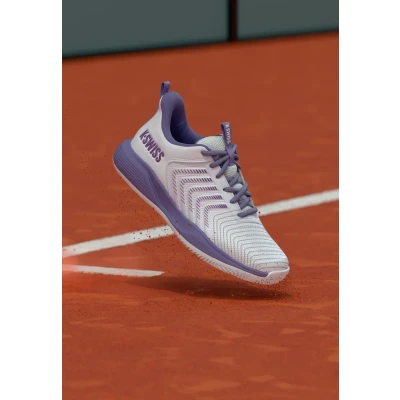 Born on the tennis court, perfected for everyday life—KSwiss brings you premium craftsmanship, allday comfort, and effortlessly clean style. From sport to street, every pair delivers the confidence and quality you can feel in every step.The Ultrashot Light Clay is the newest lightweight Ultrashot model. Equipped with 180 P.S.C in the midsole for enhanced stability on court, the Ultrashot Light has a breathable lightweight upper for a comfortable feel on court. With surgelite midsole for great cushion on court, this model is a great shoe for the beginning player. Sale | Upper material: textile/synthetics/Lining: 100% polyester/Sole: synthetics/Insole: textile | Sale order at Zalando UK! Size: 7. Color: White/purple haze/neon lavender.