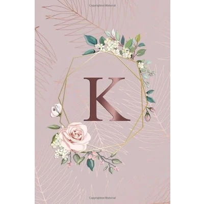 K: Tropical Rose Gold Medium Lined Notebook with Monogram Initial Letter K for Women & Girls Pretty Personalized Blank Floral Journal Diar