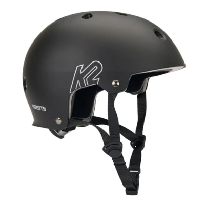 Durable ABS shell — lightweight EPS inner helmet Adaptable padding - continuously adjustable nylon webbing Buckle closure — ratchet adjustment system Certificate: DIN EN 1078 - suitable for inline skating, skateboarding and cycling Available sizes: S = 48 - 54 cm, M = 55 - 58 cm, L = 59 - 61 cm