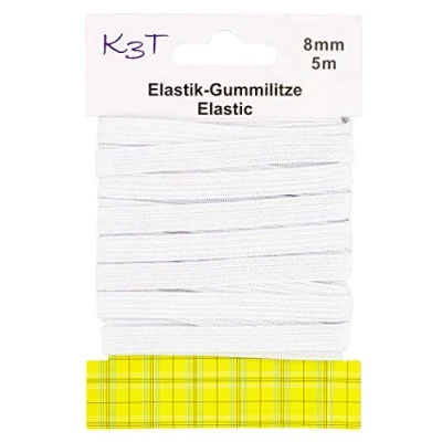 High-quality elastic band 8mm x 5m Colour: white 60% Elastodiene, 40% Polyester Washable up to 95 °C. Universal use