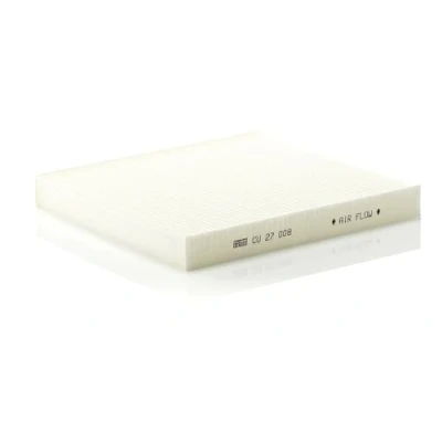 MANN-FILTER Cabin Air Filter CU 27 008 / Dimensions (mm): A = 263; B = 243; H = 30 / Premium Filter in Original Equipment Quality High-quality MANN-FILTER cabin filters offer almost 100% protection against particles such as pollen, diesel soot and tyre abrasion - for a feel-good climate in the vehicle interior and protection of the air conditioning system Exact fit and perfect tightness ensure constant filtration performance during the entire service interval / Optimum vehicle interior ventilation due to the high air flow capacity Looking to find the correct filter? Select: brand, model, vehicle type, and engine type above to see which one fits your vehicle MANN+HUMMEL complies with REACH-regulation + supports the goal of Improved health and safety through the design, manufacturing, usage, disposal and recycling of our products
