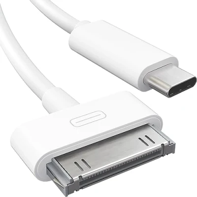 The dock connection cable is ideal for quickly charging older smartphones, tablets, and MP3 players from the iPhone (generations 1 to 4S), iPad (1 to 3), and iPod (3rd generation Classic, colour, Mini, Nano, Touch) brands Unlike conventional 30-pin adapters, this cable connects the dock connector of classic iPhone, iPad, and iPod models not to USB-A, but to the twist-proof USB-C port of modern PCs, laptops, Macs, and chargers The 30-pin/USB-C cable is equipped with break-resistant connectors and encased in flexible PVC – for maximum durability For more sustainability: Simply continue using your proven iPhones, iPads, and iPods – with a new cable that connects the old devices to the current USB generation, whether for charging or data transfer 36 months manufacturer warranty