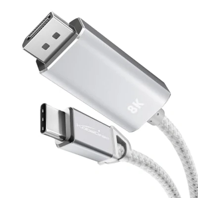 KabelDirekt 8K USB C to DisplayPort 1.4 Adapter Cable with Metal Connectors 0.5m (transfers 8K/60Hz from laptop/smartphone large screens DP 1.4, 3.1, Thunderbolt 3 White)