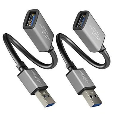 KabelDirekt USB A 3.0 extension cable 0.15m x2 (USB connector to female connector, suitable for all ports, black/space grey) PRO Series