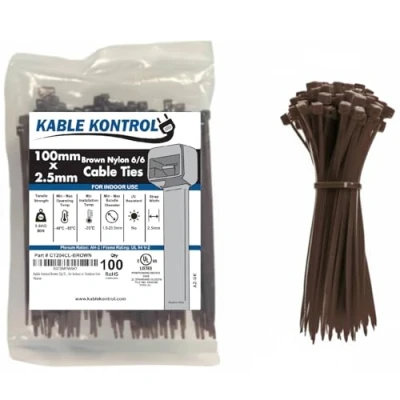 Kable Kontrol Brown Cable Ties, 100 mm x 2.5 mm, Pack of 100, 4" Premium Nylon Zip Multi Purpose Plastic Tie Wraps, Secure Self Locking Mechanism, for Home, Garden, Office and DIY