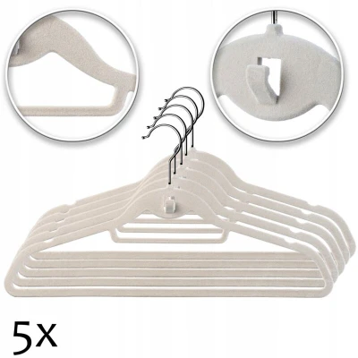 KADAX 5 x Flocked Coat Hangers with Stainless Steel Hooks for Wardrobe, Shirt, Suit, Trousers, Skirt, Suit Non Slip Surface, Space Saving, (Light Grey)