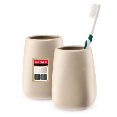 KADAX Bathroom Tumbler 8 x 11 cm, Ceramic Toothbrush Holder, Versatile Matte Cup for Toothpaste, Razor and Toiletries (Beige, Set of 2)