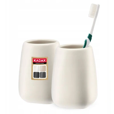 KADAX Bathroom Tumbler 8 x 11 cm, Ceramic Toothbrush Holder, Versatile Matte Cup for Toothpaste, Razor and Toiletries (White, Set of 2)