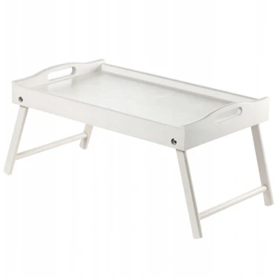 KADAX Bed Table, Breakfast Tray Made of Pine Wood, 19 x 30 50 cm Serving Tray, Folding Food for in Bed, Side Table (White)