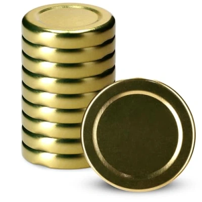 The 33 mm diameter metal stoppers are suitable for jars and bottles with a 33 mm thread diameter. These threads are popular for mini jars and small bottles used for making juice, jam, preserves, tinctures, or honey. The 33 mm diameter lids are made of galvanized steel and lined with food-grade silicone. Therefore, the contents of the bottle or jar will not react with the metal, and the lid will not corrode. The 33 mm diameter closures have three hooks and fit twist-off jars. They are reliable closures that allow for the safe heating and pasteurization of preserves. They ensure that the lid fits snugly on the jar, guaranteeing successful canning of fruits and vegetables or alcoholic products. Convex click lids are the best choice for pasteurization and other food preservation methods. The concave lid ensures a tight seal and protects the contents from air, drying out, moisture, and dirt. The Fi 33 lids are available in five colors: gold, red, black, green, and white. They also come in