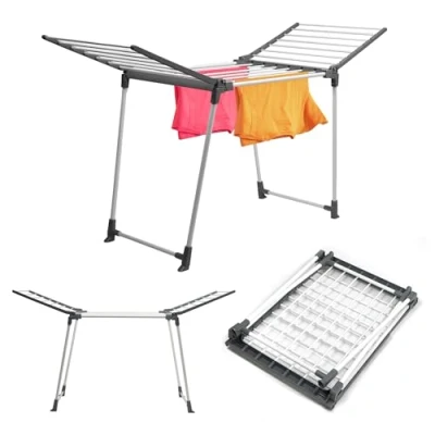 Large: This freestanding clothes dryer allows for the comfortable and secure hanging of shirts, sweaters, and other garments. With its 2/4 foldable wings and adjustable handles for hangers, the drying area is 15m²/27m². Robust: The clothes drying rack is made of powder-coated steel. The sturdy construction includes not only the frame but also the thick, non-deforming posts. It has a load capacity of up to 20kg/27kg. Stable: This stable clothes drying rack for indoor and outdoor use is equipped with adjustable feet with a locking function. It also features robust, non-slip feet. Portable: The foldable design makes the clothes drying rack easy to carry. Weighing only 3.6kg/3.28kg, it can be easily moved from one place to another. Aesthetically pleasing: Our freestanding clothes drying rack is distinguished by its aesthetically pleasing design. Thanks to its universal color scheme, it blends in perfectly both indoors and outdoors. Looking for a sturdy clothes drying rack for large loads