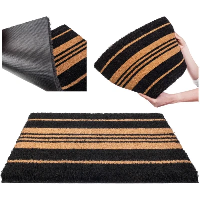 KADAX Coir and Rubber Doormat, 55 x 33 cm, Non Slip Dirt Trapper Mat, Coconut Doormat for Indoor Outdoor Use, Front Door, Door Mat (Stripes)