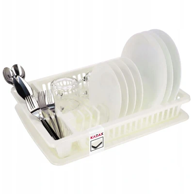 KADAX Dish Drainer, Plastic Drying Rack with Drip Tray, Draining Cutlery Compartments for Kitchen Counter, Sink (Cream)