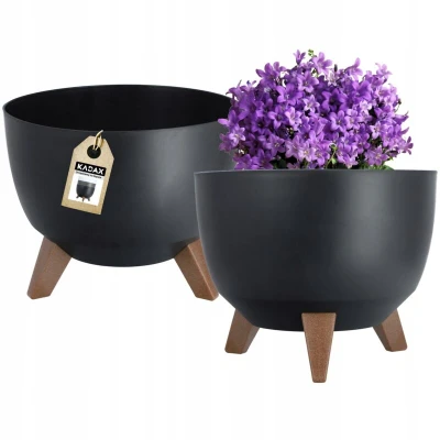 KADAX Elevated Plant Pot, Large Plastic Planter with Legs for Indoor and Outdoor Use, Durable Round Houseplants (⌀ 29 cm, Black)