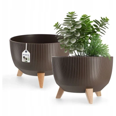 Want to add more eco-friendliness to your life? Then choose a plastic flowerpot. It's a robust material that offers the necessary protection against impacts. All of this makes the pot a real workhorse: it will stay in top shape for years to come, something you can be truly proud of. The pot is UV-resistant. Curious what that means? The flowerpot will retain its beautiful appearance and color for longer; you'll admire it anew each day. After repotting, you'll have a lot of trouble scrubbing the dirty pot clean. Removing leftover clumps of soil from the sides doesn't have to take forever! With the smooth, hygienic surface, a few moments are all it takes – the dirt practically disappears! And you'll save a ton of time. For added stability, three wood-effect inserts easily support the weight of your favorite flower. The product is available in many sizes and colors. The final step is to find a suitable color and spruce up the interior of your apartment with an eye-catching decorative