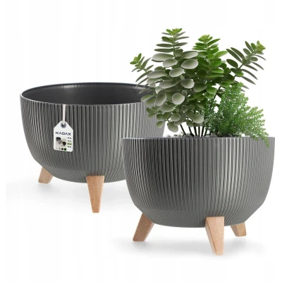 Want to add more eco-friendliness to your life? Then choose a plastic flowerpot. It's a robust material that offers the necessary protection against impacts. All of this makes the pot a real workhorse: it will stay in top shape for years to come, something you can be truly proud of. The pot is UV-resistant. Curious what that means? The flowerpot will retain its beautiful appearance and color for longer; you'll admire it anew each day. After repotting, you'll have a lot of trouble scrubbing the dirty pot clean. Removing leftover clumps of soil from the sides doesn't have to take forever! With the smooth, hygienic surface, a few moments are all it takes – the dirt practically disappears! And you'll save a ton of time. For added stability, three wood-effect inserts easily support the weight of your favorite flower. The product is available in many sizes and colors. The final step is to find a suitable color and spruce up the interior of your apartment with an eye-catching decorative